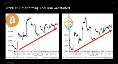 “Since the start of the Iran war, crypto prices have outperformed and Ethereum has outperformed the S&P 500 by 2,450bp. This is a meaningful outperformance in a mere two weeks,” said Thomas “Tom” Lee, Chairman of Bitmine.